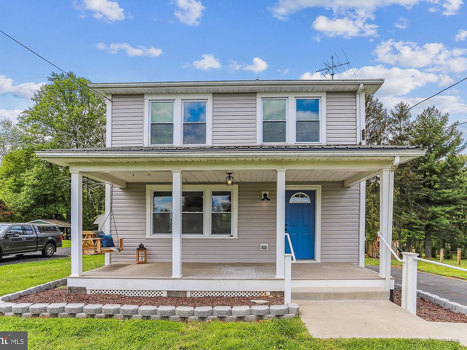 BEAUTIFULLY RENOVATED FOURSQUARE COLONIAL IN DESIRABLE NORTHERN HARFORD COUNTY. THIS CLASSIC HOME OFFERS A LARGE FRONT PORCH WITH A CHARMING SWING AND METAL ROOF. A COLORFUL COASTAL BLUE DOOR LEADS INTO A SPACIOUS OPEN FLOOR PLAN WITH NEUTRAL PAINT, NEW FLOORING, SHIPLAP, RECESSED LIGHTING, DECORATIVE CEILING FAN AND LIGHT. THE COASTAL BLUE THEME TIES INTO THE WELL-APPOINTED KITCHEN WHICH INCLUDES NEW WHITE CABINETRY, BRUSHED GOLD FIXTURES, LARGE ISLAND WITH BUTCHER BLOCK, FARMHOUSE SINK, QUARTZ COUNTERS, STAINLESS APPLIANCES, POT FILLER FAUCET, HERRINGBONE TILE BACKSPLACH, AND WOOD EXHAUST HOOD. WHITE CABINETRY AND QUARTZ EXTEND INTO THE DINING ROOM FOR EASY ENTERTAINING. THREE LEVEL BUMP-OUT ADDITION INCLUDES A SPACIOUS FIRST-FLOOR FAMILY ROOM, LAUNDRY ROOM, AND FULL BATHROOM WITH CERAMIC TILE SURROUND. WOOD STAIRCASE LEADS TO THE UPPER LEVEL. PRIMARY BEDROOM HAS A LARGE WALK-IN CLOSET AND EN SUITE WITH PENNY TILE FLOORING, MODERN BLACK DOUBLE VANITY, AND LARGE CERAMIC SHOWER WITH BENCH. ADDITIONAL BEDROOMS ARE LIGHT-FILLED AND GOOD SIZED. UPPER-LEVEL FULL BATHROOM WITH CATHEDRAL CEILING, DECORATIVE WINDOW, DUAL VANITIES AND CERAMIC TUB/SHOWER COMBO. FINISHED LOWER LEVEL HAS BEEN COMPLETED WITH A RECREATION ROOM, UTILITY ROOM, AND LARGE STORAGE ROOM. COMPOSITE DECK WITH STAIRS TO BACKYARD WITH PASTORAL AND WOODED VIEWS. NO HOA. OTHER UPDATES INCLUDE: MAJORITY OF WINDOWS REPLACED, HVAC, WATER HEATER, DRYWALL, ALL FLOORING, COMPOSITE PORCH, ELECTRIC, PLUMBING, WELL PRESSURE TANK, SIDING AND ROOF. LOCATION OFFERS COUNTRY LIVING WHILE BEING MINUTES AWAY FROM SHOPS, RESTAURANTS, LOCAL BREWERY, FARMSTANDS, FLORAL/GARDEN NURSERIES, SEAFOOD CARRY-OUT, PARKS AND SCHOOLS.