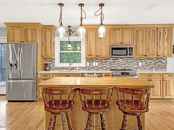 Welcome to this beautiful 3-bedroom, 3-bath ranch sitting on 2.4 private acres. Flooded with natural light as you step through the foyer, you are greeted by a spacious two-story foyer family room featuring a stunning wood-burning fireplace, perfect for cozy nights and relaxation. The open-concept kitchen boasts amish made hickory cabinetry, a large island and plenty of granite countertop space perfect for all your entertaining needs. A convenient access door in the kitchen leads you to your second porch area which is perfect for grilling and family fun! Gorgeous 3/4 hardwood flooring flows throughout most of the home, leading you to 3 comfortable bedrooms with generous closet space, including a primary suite with a walk-in closet and full bath. The basement awaits your own personal touch! As you head downstairs, you will find a spacious area that is perfect for creating a recreation room, home gym, or additional living space the possibilities are endless. Step outside to enjoy peaceful evenings on the expansive deck overlooking the scenic property. With 2.4 acres of land, you will love the privacy and endless outdoor possibilities. Plus, the large 8-foot A-frame outbuilding offers extra parking, electrical, storage, and the opportunity to create your dream workspace or even an in-law suite. Come make this charming property your own!