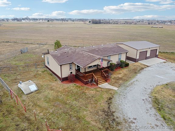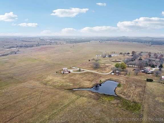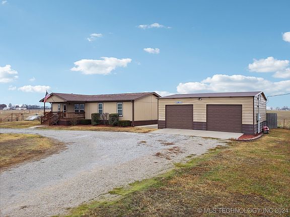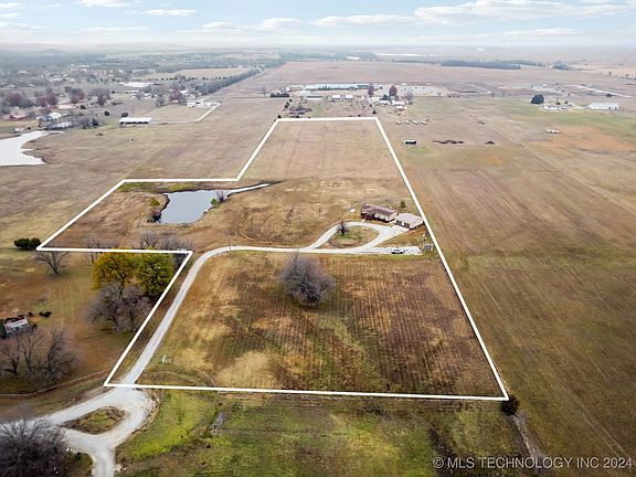 Charming home on 11+ acres m/l with fresh updates, including a new microwave, hot water heater, carpet, and interior paint (2024). The home features a large kitchen with an island, crown molding throughout, a sunroom (not included in square footage), and a free-standing 30,000 BTU fireplace with a 100-gallon propane tank. Convenient hook ups for electric and water are at a previous barn site, and a replacement exterior door in the utility room. Outdoor highlights include a stocked fishing pond, RV hookups, in-ground tornado shelter, and mineral rights. The 32' x 32' (m/l) insulated steel garage/shop features a concrete floor, electric overhead doors, generator wiring with Eaton interlock, and 200-amp service. Quietly situated on a peaceful dead-end road, this property offers modern comforts, functional upgrades, and serene country living!