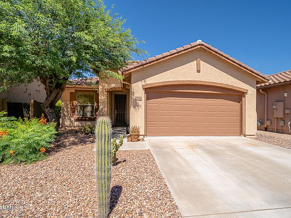Come view this Anthem Southwest retreat. This home features a beautiful backyard landscaped perfectly with native trees and cacti. If you enjoy watching nature, quail and wrens and be seen regularly enjoying the yard. The large gazebo will convey and can used to extend the back patio for parties, entertaining and relaxing. You will be proud to welcome your friends and family to this beautiful home, tastefully painted and well care for. Current owner loves southwest decorating but you can come in and Mae it your own style retreat. Home has 3 bedrooms and 2 full bathrooms. Main bedroom has a walk in closet. Carpets were replaced in 2023. If you're looking for a beautiful neighborhood with great schools, then Anthem and this home are for you. Living room television will be left on the bracket including surround sound and all its speakers. Work bench attached to the garage wall does not convey. Seller will have the wall repaired once the workbench is removed.