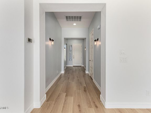 Stunning mountain views! Move-in ready single-level on a 10,116 sq ft lot with 3 beds + den and a heated/cooled 3rd garage with private entrance and lighting and electrical, ideal office or gym. Light, open floor plan with huge slider to a custom patio and resort-style Pebble Sheen pool w/ UV sanitizer. Chef's kitchen offers upgraded cabinetry, pull-outs, granite island, double ovens and breakfast area. Owner's suite has large walk-in closet, dual vanities and oversized shower. Travertine patio features grill, sink and beverage bar. RV gate, soft water, whole-house filtration, Meritage energy efficiency. Near Gilbert Regional Park and A+ Bridges Elementary.