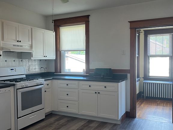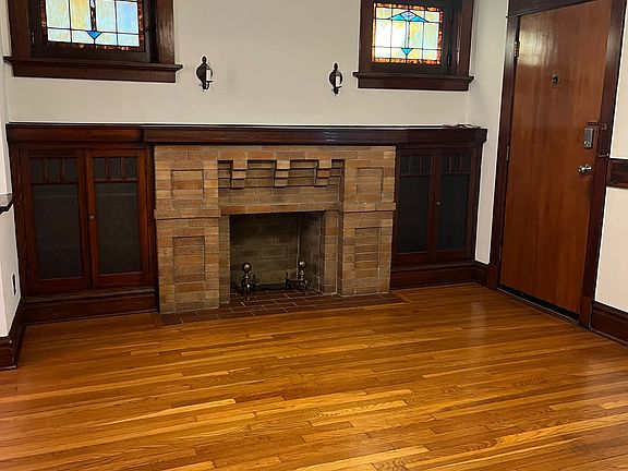 Non-functioning fireplaceWasher and dryer hookupsBathroom flooringNewly updated kitchenStained-glass windowsRadiator heatNew vanity