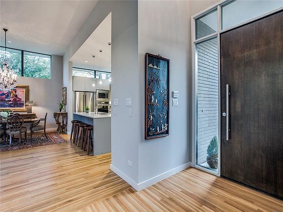 Better than new,this quintessential Tom Greico contemporary is the best of the best in this booming North Dallas neighborhood.Offering superb 2-story floor plan with 1st floor master & guest bedroom,this 5 bed,4.5 bath home features soaring ceilings with tons of natural light.Open "great" room has a commanding presence, yet maintains a warm & inviting atmosphere.Large kitchen with breakfast bar features KitchenAid appls,including double ovens,built-in microwave & gas cook top,perfect for entertaining.Beautiful master with corner windows,high ceilings & access to backyard.Luxurious master bath with heated floors, double vanities & separate jetted tub & shower! Over-sized backyard perfect for today's family.