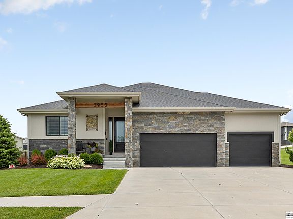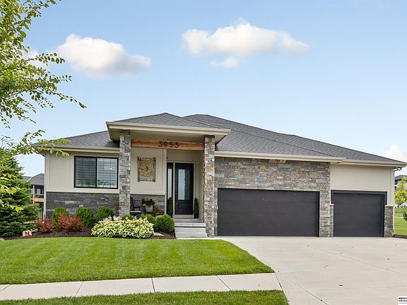 Welcome to this beautifully crafted, custom-designed home that perfectly blends luxury, comfort, & functionality. Located on an oversized corner lot, this thoughtfully designed home features exquisite details & high-end finishes at every turn. The main level boasts hardwood floors, plantation shutters, rich crown molding, exposed beams, & custom faux-painted finishes that add warmth & sophistication. The gourmet kitchen features a large island, eat-in dining area, walk-in pantry, & Frigidaire Professional appliances with a 5-burner gas range. A versatile front bedroom with built-in office cabinetry makes the perfect work-from-home space. The spacious primary suite offers two walk-in closets, dual sinks, & tile walk-in shower. Your private backyard oasis is complete with a sparkling pool with an automatic cover, hot tub, & covered patio. The lower level features a large rec room with a stone fireplace & wet bar, two additional bedrooms, & a spacious bath. Schedule your