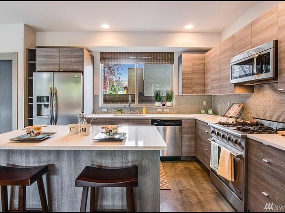 Welcome to PRIME West Seattle. This 3-story, detached 3 bed/2 bath home will knock your socks off. Enjoy views of the Cascade Mountains & downtown from your oversized rooftop deck. Entertain in your open concept kitchen w/ vaulted ceilings, custom cabinetry, quartz countertops, open sight lines to living room, stunning staircase, & floor to ceiling sliding doors to your backyard. Bask on your sun-lit patio thru-out - fully-fenced! 2nd floor: 2 beds/1 full bath + storage closet. 3rd floor: laundry room, primary bedroom w/ elegant en-suite bath & spacious walk-in closet. Don't forget the assigned parking pad & ample street parking. Conveniently located just blocks from all West Seattle has to offer! Enjoy shopping, dining, entertainment, parks and beaches, all minutes away. Walk to the Junction, the Farmer's Market and Admiral. Easy drive to freeways and Downtown Seattle for worry-free commutes. Steps away from the Rapid line to Downtown Seattle and South Lake Union. A perfect walk score of 97! No smoking allowed