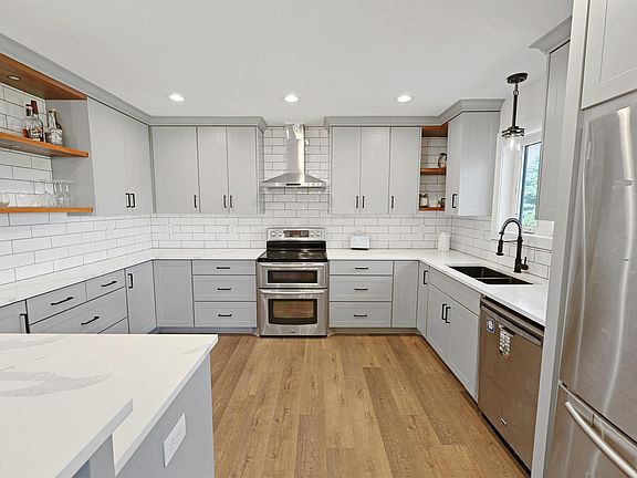 Beautiful 4BR/2BA home on a ONE ACRE lot on the Golf Course! Everything has been updated in this house! New kitchen, flooring, trim, doors, appliances, bathrooms! Sunroom overlooks the private backyard and golf course. Upper level has 3BRs and walk-thru bath to primary with dual closets. Lower level features a walk-out family room w/patio access, 4th BR, full bath, laundry. Basement offers rec room, 2 storage rooms & potential 5th BR.