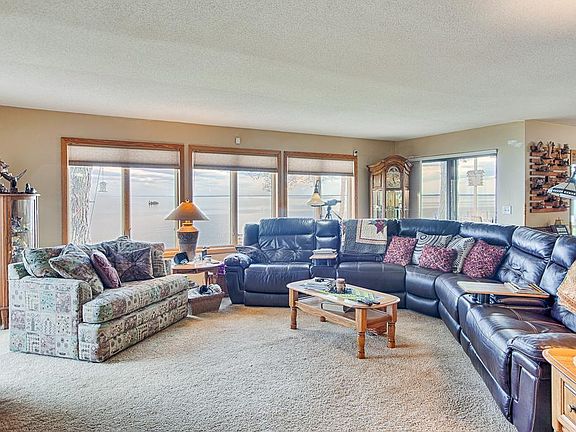 Beautifully maintained split level 2 bed 2 bath with 100 feet on Mille Lacs Lake. Panoramic southern views will greet you as you sit back on the deck or extensive brick patio. The three stall garage and large shed provides excellent storage options. Clean, level access to the shoreline framed with landscape block. There is an RV parking pad with power and septic hookups. In-ground sprinkler system for ease of yard maintenance.