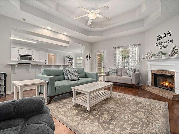 Welcome to this beautifully maintained 4/2.5 in popular Champion Hills Subdivision boasting granite countertops throughout, painted cabinets, a breakfast nook, tray ceilings, side-entry double garage and much more. The spacious split-bedroom floor plan has gorgeous wood floors throughout the common and wet areas and carpet in the bedrooms. The primary bedroom with ensuite has a double vanity with a shower, separate soaking tub and double walk-in closets. The back yard is private with a covered patio and extra storage sheds that will remain.
