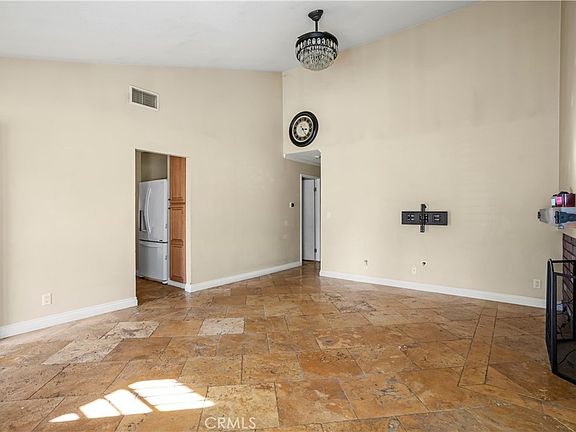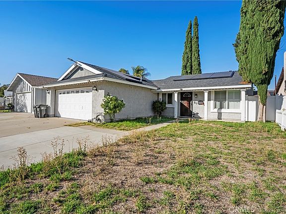 Welcome to this delightful 3-bedroom, 2-bath home offering 1,310 sq. ft. of comfortable living space on a nearly 6,000 sq. ft. lot. Thoughtfully upgraded in 2016, this charming home just needs a fresh coat of paint and a little tender loving care outside to make it truly shine. The spacious living room features vaulted ceilings and a cozy fireplace, creating an inviting atmosphere for friends and family. The kitchen offers granite countertops, stylish cabinetry, and quality appliances. The primary ensuite includes a large walk-in closet, while the home’s travertine and Pergo flooring, crown molding, and upgraded baseboards add an elegant touch throughout. Additional highlights include a spacious garage with pull-down attic access for added storage. The backyard is designed for relaxation and easy maintenance, featuring artificial turf, vinyl fencing, a spa, and a covered patio with a ceiling fan perfect for enjoying the outdoors. Two large storage sheds provide plenty of extra space, one ideal for tools and the other perfect as a small workshop or playroom.