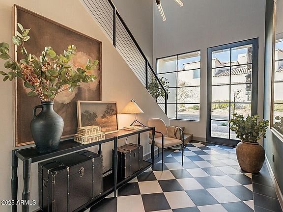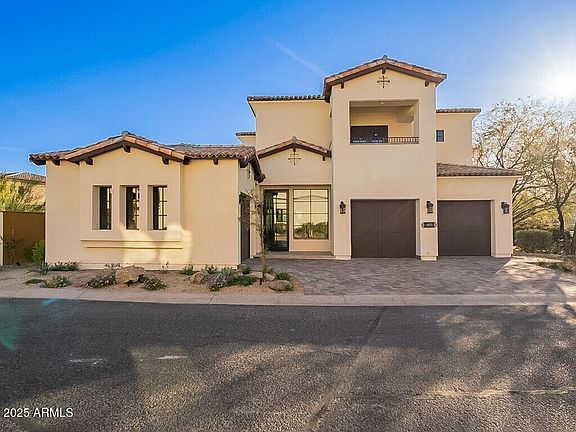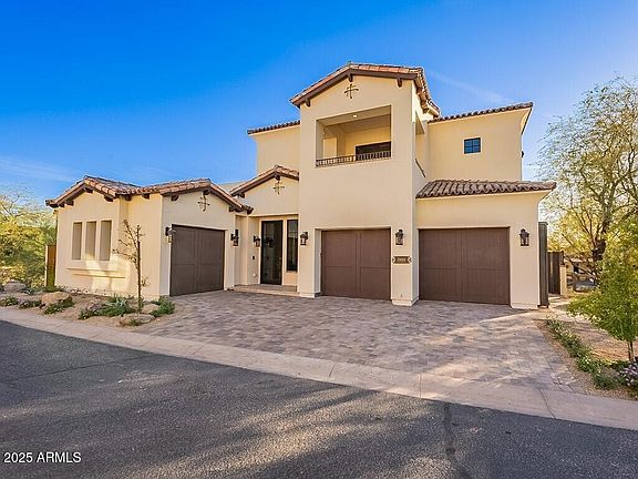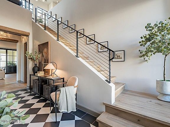 New Contrsuction Completed 3/5/25. This Modern Desert Hacienda comes Fully Furnished and turn key ready, it is the last remaining New Home by Cullum Homes in the community of Paradise Reserve. This contemporary Santa Barbara design home sits next to the community park with no neighbors. The Iron front door leads you into a 2 story foyer with a checkered pattern black and white flooring and staircase in a warm wood by Du Chateau. The Chefs Kitchen adorned with Sub Zero, Wolf and Cove appliances overlook the Great Room with high ceilings, large Fireplace, Wet Bar and wall of glass opening to the covered patio of the back yard. The outdoor space carries the same checkered pattern tile bringing the outdoors in. The outdoor fireplace, water feature and outdoor BBQ are great for those entertaining evenings. 2 of the 3 oversized en suite guest rooms all accommodate King Size Beds and have their own outdoor sitting space. 1 of the guest bedroom en suite is designed like a guest Casita with a Kitchenette and attached garage. Use it as part of the home at all times or close it off to give guests their own space and privacy. The 3 car total garage, laundry, powder bath and elevator complete the first level of this home. You may take the elevator or staircase to the Primary suite level. The loft area and outdoor loggia is perfect for retiring to for the evening. Take in the incredible views of the Phoenix Nature Preserve from the covered entertaining space. The Primary suite and bath are just steps away. The calming spa like bath with Shower, soaking tub, vanity and custom walk-in closet with built in storage give privacy to the Primary. The loggia off the Primary bedroom has views of Downtown and Uptown Phoenix on the Horizon. This community is situated in close proximity to all Paradise Valley, Biltmore and Scottsdale have to offer! 24/7 Guard Gated Clubhouse and Pet Park The mixture of contemporary design and pops of old world blend timelessly in this new home.