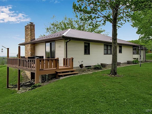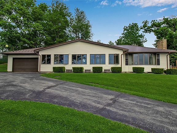 Welcome to 3955 Four Rod Rd, an exceptional property offering 3.75 acres of serene countryside living. Perched atop a hill, this home boasts stunning panoramic views, especially during sunset, creating a picturesque backdrop for everyday life. Inside, you will find a full walk-out basement that provides endless possibilities for customization—transform it into a cozy family room, a game area, or a home gym tailored to your lifestyle.The property includes a generous 2.5-car attached garage, ideal for your vehicles and storage needs, alongside an additional 2.5-car detached outbuilding perfect for hobbies or extra storage. For those seeking space for projects, the barn offers ample room for storage or a workshop.Enjoy year-round comfort with a high-efficiency hot water and baseboard heating system, ensuring you stay warm in winter while being energy-conscious. The tranquil pond with a dock adds to the charm, providing a perfect spot to relax and connect with nature.Outdoor enthusiasts will appreciate the ample space for activities like four-wheeling and snowmobiling. Located less than 10 minutes from the vibrant village of East Aurora, you can relish the tranquility of country living while enjoying easy access to local shops and dining. Don't miss this opportunity to own a property that beautifully combines comfort, space, and the great outdoors. Dont let this opportunity be the one that got away. Showings start ASAP. Offer deadline set for June 1st at 2pm. Please make all offers highest and Best.