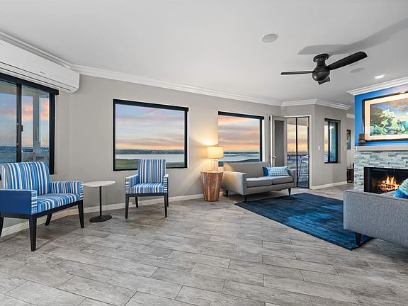 Turn-key, Remodeled, and FULLY FURNISHED!! This top-floor 2BR 2BA corner-unit is guaranteed to check all of your boxes!! Enjoy Breathtaking, Panoramic Views of Mission Bay, the stunning wildlife preserve, Sea-world Fireworks, and the Vibrant Downtown San Diego Skyline!! Spanning over 1,369 sq ft, the open floor-plan flows seamlessly from the living room, family room, dining area, and large kitchen with stainless appliances. The 2 bay-front balconies provide ample outdoor living space, where you can enjoy beautiful san diego sunrises, and breathe in the fresh air. Other luxurious features include: Furnishings, automatic electric blinds, gas fireplace, tiled showers, 2 walk-in closets 2 garaged parking spaces, full sized washer and dryer (in-unit)! There are only 10 units in this fully gated complex, which offers a quaint, boutique community feel! This remarkable home is a testament to stylish and warm water-front living in one of California's most sought-after locations; it promises the residents an unparalleled lifestyle experience amidst absolutely breathtaking surroundings.