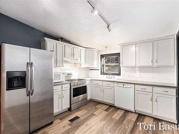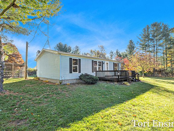 Very well maintained manufactured ranch home on a private 1 acre! Main floor living! Kitchen is open with a mud-room and laundry area. All appliances to stay. Good sized living room. Owner suite has a walk-in closet and full private bathroom. Two more bedrooms and another full bathroom. Outside you will find an insulated pole barn with a 1-stall parking spot with another stall used for a workshop/storage and a loft used for additional storage space. The yard is mostly fenced and has a fire pit area. Nice front porch and new back deck. New flooring and fresh paint throughout the entire home. This home is very clean & ready for a new buyer! Schedule your private showing today!