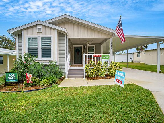 Spacious 2-Bedroom, 2-Bath HomeThis charming 2-bedroom, 2-bath home offers plenty of space and comfort. Equipped with ceiling fans in both bedrooms, the living room, and the front porch, you'll enjoy a cool breeze throughout the home. The kitchen is a chef's dream, featuring ample storage, soft-close cabinets, stainless steel appliances, and a breakfast bar perfect for casual dining.Just off the kitchen, you'll find the utility area with washer and dryer hookups for added convenience. The open floor plan between the living room and kitchen is ideal for entertaining family and friends, whether it's for holiday meals or a casual Sunday dinner.The primary suite is spacious enough for a king-size bed, and the master bath includes a large walk-in shower. The generous walk-in closet, conveniently located off the bathroom, provides plenty of storage. The guest room is a versatile flex space, perfect for a guest room, office, or whatever suits your needs.Additional features include a carport, a shed for extra storage, central air conditioning, and an irrigation system to keep your lawn lush and beautiful. Be sure to check out this lovely home soon!This home is located in an active, resort-style 55+ community in Zephyrhills, offering a low-maintenance lifestyle surrounded by tropical beauty. The community features a heated pool, shuffleboard court, and a variety of planned activities to keep you engaged and entertained.