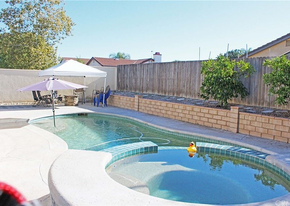 POOL, SPA, SINGLE STORY and RV PARKING - We have it all.. 3 bedroom, 2 full bath single story home with beautiful POOL and SPA, RV parking, large CORNER lot with desert scape front yard, low maintenance and NO HOA. Newly painted interior. Kitchen has breakfast bar and dining room with sliding glass door to outside patio. The backyard is designed for entertaining. The covered patio is on one side of the home with fence to separate from the pool area. On the other side of the fence, beautiful pool and spa, fruit trees, and portable fire pit. New pool pump with vinyl fencing enclosure. There is access to the pool and spa from the master bedroom as well. New concrete in RV parking area. 2 car garage with laundry hookups. Great school district, close to shopping, freeways, LOW TAXES and NO HOA. Hurry, won't last long