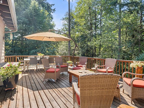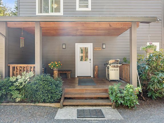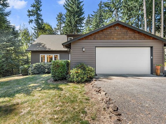 First time ever on the market! This custom-built retreat sits on 2 private acres surrounded by evergreens and designed to capture natural light with soaring windows and vaulted ceilings. The home offers 3 bedrooms including a tranquil primary main floor suite, an open kitchen and dining area, and a versatile loft. Outdoor living shines with a large deck, detached guest cabin, detached cedar sauna, fenced garden, and workshop. Just minutes from Eagle Fern Park and 45 minutes from Timberline this forested sanctuary blends comfort, privacy, and modern living.