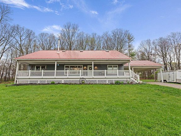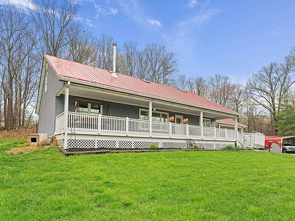 Experience country living at its finest with this exceptional offering in Owen County, featuring breathtaking views amidst the rolling hills. 8.98 acres of premier blend of hunting, trail riding, gardening, or hobby farm, yet only minutes away civilization! Nestled within this landscape is an inviting 2200 sf 3-4 bedroom 2.5-bath home built in 2016. The main level showcases an open layout featuring proportioned living room, kitchen equipped w/ bar seating, and a dining area perfect for entertaining. Additionally, on the main level you will find a primary ensuite, 2nd bedroom, guest bath and laundry room. On the upper level there is great room/recreation room, 3rd bedroom, 1/2 bath and possible 4th bedroom/office space. The home has a 24x24 attached carport, an additional 20x12 carport and 8x12 outbuilding for storage. There is also a spot that is perfect for an RV. Easy access to all amenities, (8 min.to Ellettsville, 7 min. McCormick's Creek Park, 20 min to Bloomington)