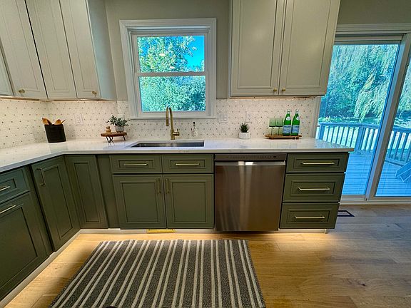 Outfitted with solid construction cabinets (not the wobbly kind), sleek quartz countertops, decorative marble backsplash, stainless steel appliances, and—most importantly—a coffee/snack bar with a beverage cooler large enough to hide all your LaCroix or ''mommy juice.'' It opens to the living room with a cozy gas fireplace and a deck that stares proudly into your private, wooded backyard.