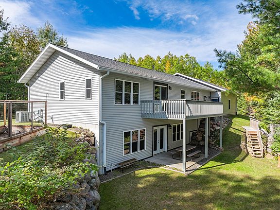 Extremely well-maintained gorgeous custom-built spacious home that overlooks peaceful Wilson Lake! Enjoy the serene views from almost every room in the home, or the lakeside deck, lower-level concrete patio or cozy firepit area. The grounds are immaculate, offering attractive landscaping, black top driveway & nice stairs to the Poly dock perm. pier. The 3-car attached garage is insulated, drywalled & heated! Inside features a recessed T&G knotty pine ceiling, beautiful fireplace, stunning custom kitchen with granite, center island, breakfast bar & spacious lakeside dining area. Waterfront Master suite, lg w/in closet & Mba w/custom cabinetry, soaking tub & w/in shower. Finished walkout LL boasts a huge wet bar/game rm, family rm, 3rd full ba & expansive exercise rm. Excellent space for entertaining all your family & friends, many fine finishes, located with direct access to the ATV/UTV, snowmobile trails & only a few miles from the TFF & Trude lakes for more exploring experiences!