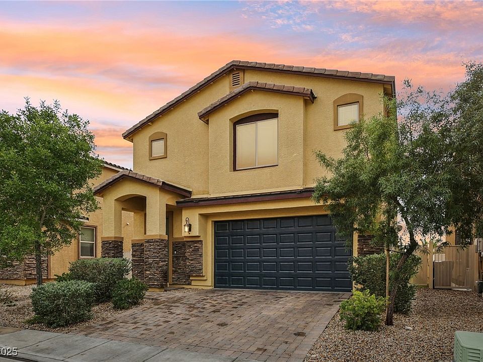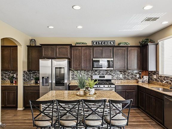 Extremely rare opportunity to purchase a home in Laurel Canyon with a swimming pool/spa! This 2-story home features both modern amenities & architectural character situated in a fantastic family-friendly neighborhood! Imagine almost 3,000 sq ft, 5 spacious bedrooms, 3 baths, 2 family rooms w/a dining room! The upgraded kitchen that overlooks the family room provides beautiful dark brown cabinets, granite countertops, glass tile backsplash, island & stainless-steel appliances! Downstairs bedroom w/its own private bathroom for your visiting guests! Stunning flooring throughout w/an upstairs family room/loft area for the kids! Enjoy your backyard oasis while swimming in the pool, soaking in the spa or relaxing under the covered patio surrounded by the vibrant green turf! Community playground/park conveniently located to shopping, dining, Nellis AFB & freeway access! Enjoy the incredible savings with 3.25% VA Assumable Loan & low energy costs from the solar! Over $75k spent on backyard!