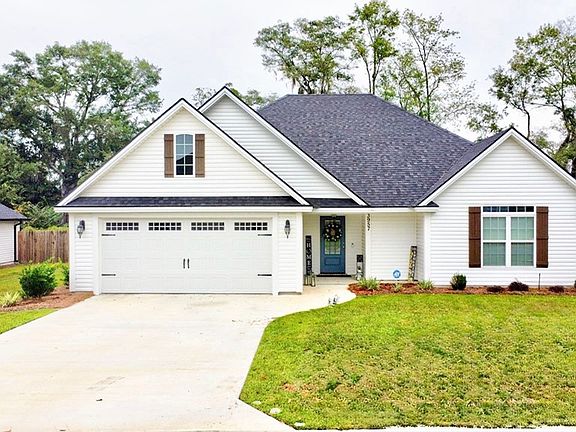 Stunning split-floor-plan home w/ a welcoming foyer featuring custom wainscoting. The great room boasts a double trey ceiling & luxury vinyl plank flooring, flowing through the kitchen, laundry, & hallways. The bright kitchen offers granite counters, a granite island with seating & storage, stainless appliances, a large pantry, subway tile backsplash, & decorative fixtures. The breakfast room opens to the kitchen for seamless entertaining. The master suite includes a trey ceiling, double sinks w/ granite counters, his-and-her closets w/ built-in closet systems, jacuzzi tub, & tiled walk-in shower. Vaulted ceilings in the front guest room enhance the space, while two additional bedrooms feature generous closets. The guest bath offers granite counters, double sinks, & a tub/shower combo. Enjoy a fully fenced yard & a screened-in back porch, perfect for a relaxing evening. Meticulously maintained & move-in ready, this home blends elegance, function, & plenty of natural light throughout.