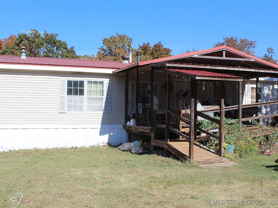 Tucked away on 76.5 acres of pristine Oklahoma countryside, this spacious double-wide mobile home offers the perfect blend of comfort, privacy, and outdoor adventure. With three bedrooms and two bathrooms, the home features a nice-sized covered front porch ideal for enjoying quiet mornings or relaxing evenings. Set back off the road and surrounded by mature oak timber, the property is accessed through a gated driveway that enhances its secluded charm.