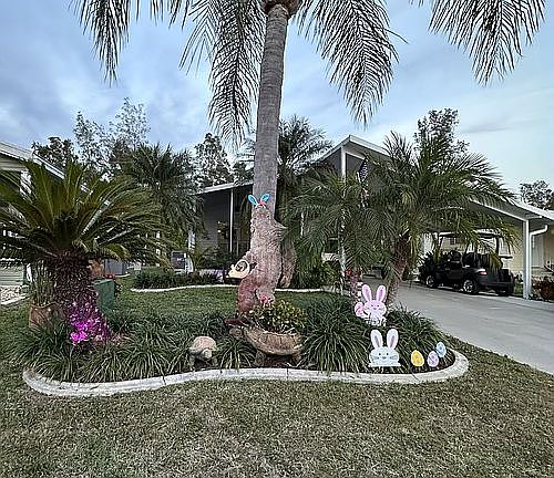 Welcome to your beautifully updated split 2-bedroom, 2-bathroom home (Golf Cart included). Fully furnished and move-in ready at The Heritage, a vibrant 55+ active adult community offering resort-style amenities and a friendly neighborhood atmosphere. The open layout features a spacious living and dining area, a bright windowed kitchen with a breakfast bar, and new Samsung stainless steel appliances. A separate mudroom includes a full-size washer and dryer and cabinetry for added storage. Recent upgrades include a new roof, new carport, new energy-efficient windows, new central air conditioning/dehumidifying system for year-round comfort and irrigation system.