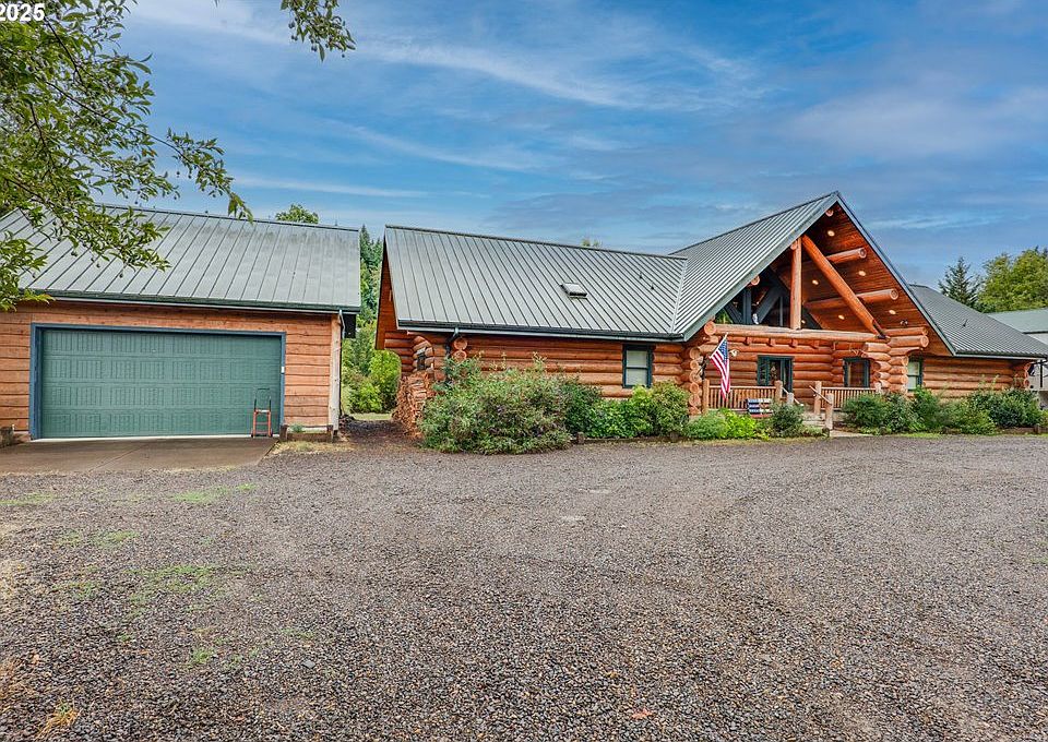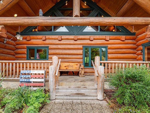 Custom log homeSpacious loftSweeping viewsImmense back deckUnfinished bonus roomLuxury finishesWood stove