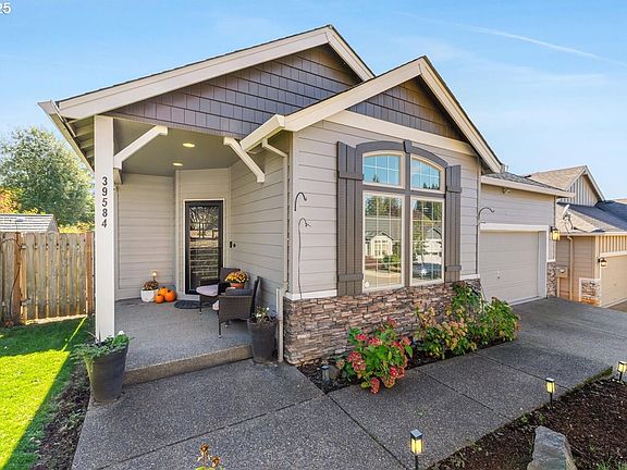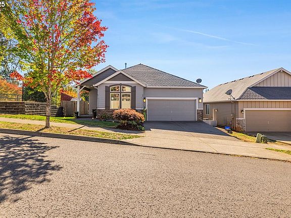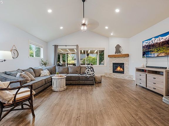 Beautiful single-story home offering 4 bedrooms, 2.5 bathrooms, and 9-foot ceilings throughout, with a vaulted living room that enhances the spacious feel. The open-concept kitchen features granite countertops, a large island, gas appliances, and a built-in pantry—ideal for cooking and entertaining. The adjoining living area includes a custom stone fireplace and vaulted ceilings for added character. The front dining room provides an inviting space for meals or gatherings. The primary suite includes vaulted ceilings, a walk-in closet, and an ensuite bath with dual vanities. Recent updates include new flooring (2021), new light fixtures, new toilets, and interior/exterior paint (2020). Additional highlights include a large laundry room with utility sink and cabinetry, and a garage with overhead storage racks. Outdoor features include fully fenced grounds, a fenced garden area with raised beds, a storage shed, and a covered back deck with shades—perfect for outdoor enjoyment. Prime location next to Timberline Park and minutes from coffee shops, restaurants, and hiking trails. A beautifully maintained one-level home that’s truly move-in ready!