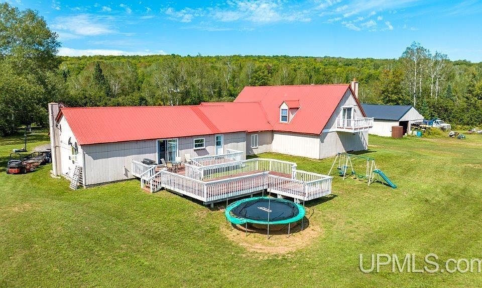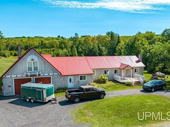Rural setting with 20 acres and part of the Pike River flowing through the back side of the property (frontage of river is unknown) Trails have been made on the acreage for ATV, snowmobile, dirt bike, walking, or however you may want to use them. This large - five bedroom, four full bath home - has been updated with new windows and doors since 2016. Enter through the garage and you will find an open area for removing shoes, boots, and jackets along with an area for the washer and dryer. There is a room off of this area that is being used as a bedroom (no closet) but can also be an office. Walk up a few steps that takes you into the open area that will consist of the kitchen, breakfast nook, and living room area. At the end of the home on this level is a large bedroom with a full bath next to it. There is one more full bath by the kitchen that will need some updating. Above the garage is where you will find three more bedrooms (one without a closet) and two more full bathrooms. Master bedroom with bathroom and balcony overlooking the backside of the property. Attached garage is 30 x50 with lots of room There is also a 16 x 16 storage shed and a 30 x 58 pole barn type building on the property. This home gives you peace, quiet, and the ability to roam around. Come take a look. NOTICE: All information believed accurate but not warranted. Buyer recommended to inspect property, verify all information & bears all risks for any inaccuracies. Tax information is subject to change. All measurements (acres, lot size, square footage etc) are estimated. Sellers may have audio/video recording devices present on property. By entering or being on property, Buyer and Buyer’s agent consent to being recorded.