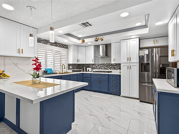 A rare find with NO HOA! This single-story retreat offers over 2,600 sq ft of flexible living. Inside are 4 bedrooms, a separate studio, and a sunroom—ideal for an office, gym, or creative space. The open-concept design features a modern kitchen with two-tone cabinetry and a large island at the center of the home. Step outside to a private backyard with a sparkling pool and spa, perfect for both relaxation and entertaining. Major upgrades add lasting value, including energy-efficient solar panels, dedicated RV parking, and an expansive paver driveway that enhances curb appeal while providing ample parking. This property combines style, function, and convenience in one of Las Vegas’s most versatile offerings.