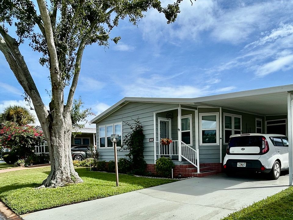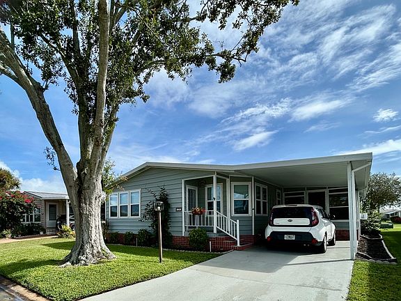 Beautifully maintained and meticulously cared for two-bedroom, two-bath home that is completely move-in ready and nicely furnished throughout. Step inside to find new vinyl flooring with new plywood subflooring, 15 new tilt-in windows for easy cleaning that fill the home with natural light, and fresh paint inside and out. The home has been tastefully decorated with quality furnishings, making it ready for immediate enjoyment-just bring your suitcase! The kitchen features an eat-in area surrounded by windows, providing a bright and cheerful space for morning coffee or casual dining. The laundry area includes all new appliances, including a washer and dryer, only one to two years old. Additional updates include a new roof (2023), well-maintained HVAC system, and complete replumbing both under the home and inside. The exterior is very well maintained with lovely landscaping, ample parking in the driveway and carport, and a spacious lanai featuring a five-piece patio set that stays. The lanai also includes both an AC unit and a heater, making it comfortable year-round. The front main entrance offers ample space to get in and out easily and includes a small porch area with attractive railing, adding to the home's curb appeal. This beautiful home shows pride of ownership in every detail, offering comfort, style, and worry-free living.MORE PHOTOS TO FOLLOW! This home is part of Lakes of Melbourne, a GATED 55+ community offering fantastic amenities. The community's bulk-rate Spectrum package provides cable and internet for only $75 per month, adding excellent value to the home. Location: Conveniently located near major routes, shopping, restaurants, hospitals, and just a short drive from the beaches of Cape Canaveral, this home is perfect for year-round living or as a seasonal retreat.
