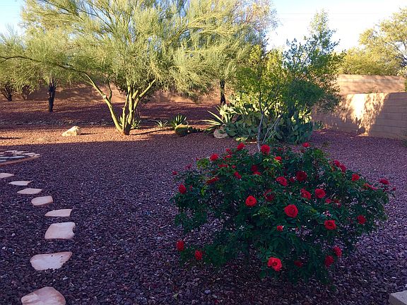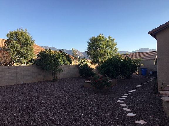 This desirable Lennar floor plan is on one of the largest private lots in Black Horse Ranch with gorgeous Santa Catalina Mountain views. Mature landscaping on a large pool-sized yard, drip irrigation, upgraded landscape gravel-front, and back yards. An extended brick patio with aluminum ramada-fruit trees of pomegranate, peach, orange, lemon, and kumquat. Beautiful granite kitchen with island and newer appliances. The welcoming front entrance boasts a courtyard, custom gate, and security screen doors on both the front and back. Plantation shutters in all bedrooms! New flooring in the bedrooms, living, family, and dining rooms. Close to schools, shopping, theaters, dining, Catalina State Park, Honey Bee Village, and the Oro Valley Hospital, all within 1-6 miles