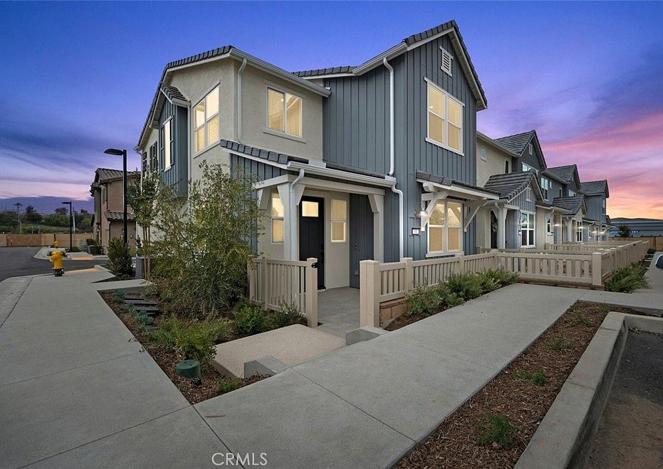 Set against the breathtaking Santa Ana Mountains, this Farmhouse-style home exudes warmth with wide-plank laminate flooring, upgraded carpet, and White Shaker cabinetry throughout. The open-concept design creates a bright and spacious atmosphere, enhanced by recessed lighting and smart-home features. Enjoy seamless control of your locks, thermostats, lighting, and garage via HomeSmart Technology, supported by a Mesh WiFi system for full-home connectivity. The EV-charging ready garage adds convenience for eco-friendly living.