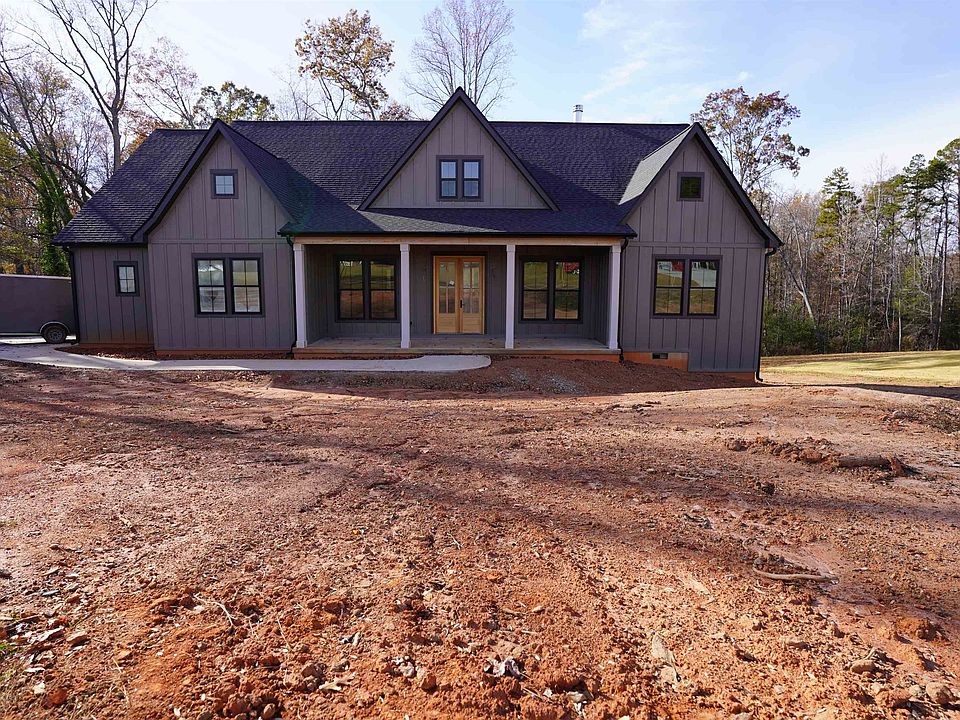 Stunning 2025 Custom Home on 1.83 Acre Estate! Experience luxury living in this newly built (2025) custom home, perfectly situated on a generous 1.83-acre lot. The property boasts striking curb appeal with durable CONCRETE PLANK SIDING and a welcoming covered front porch. Step through elegant DOUBLE FRONT DOORS into a spacious foyer, where 9+ foot ceilings create an airy and open ambiance throughout the desirable SPLIT BEDROOM FLOOR PLAN. The heart of the home is a chef's dream: a GRANITE ISLAND KITCHEN featuring a FARMHOUSE SINK, BREAKFAST BAR, and a WALK-IN PANTRY WITH CUSTOM BUILT-INS for optimal organization. The kitchen seamlessly flows into the living and dining areas, designed for effortless entertaining and everyday living. Extend your living space outdoors through the SCREENED, COVERED TREX DECK, perfect for relaxation and enjoying the serene surroundings. Retreat to the primary suite, a true oasis with a VAULTED CEILING, DUAL VANITIES, a CUSTOM WALK-IN TILE SHOWER, a luxurious VESSEL TUB, and DUAL WALK-IN CLOSETS. Enjoy the convenience of DIRECT LAUNDRY ROOM ACCESS from the primary suite's closets. The opposite side of the home offers three additional well-appointed bedrooms and a full bath with BUILT-IN STORAGE. Above the garage, discover a versatile FLEX ROOM WITH FULL BATH, ideal for a guest suite, home office, or media room. This home is finished with HARDWOOD FLOORS in the main living areas and primary suite, plush carpet in secondary bedrooms, and a PROFESSIONALLY LANDSCAPED YARD. An EXTRA-LARGE DRIVEWAY provides ample parking. Don't miss the opportunity to own this exceptional property!