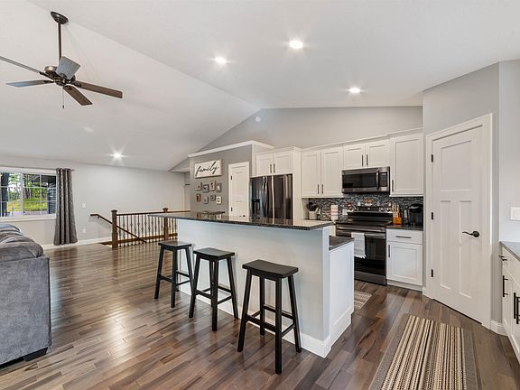 Located in a beautiful neighborhood surrounded by newer, high-quality homes, this meticulously maintained residence offers an exceptional blend of style, comfort, and functionality. Bathed in natural light, the interior showcases stunning solid hardwood floors and an open-concept layout centered around a cozy gas fireplace. The heart of the home is the large open kitchen, perfectly designed for everyday meals and entertaining alike, offering ample space, functionality, and flow. Retreat to the full master suite featuring a spacious bedroom, a luxurious master bathroom with a beautifully tiled walk-in shower, and a walk-in closet enhanced with custom wood cabinetry for elegant and efficient storage. The main level opens to a full-length deck, ideal for outdoor dining or relaxing, while the covered patio below offers a shaded retreat. The expansive lower level boasts a massive recreation room, perfect for hosting gatherings, movie nights, or game days. A true highlight of the property is the garage setup: a heated 2-car attached garage plus a heated 2-car detached garage, which is a rare feature in residential developments and perfect for extra vehicles, a workshop, or storage. Surrounded by meticulous landscaping and enhanced with a whole-house hardwired security system, this sun-filled home checks all the boxes. Don’t miss your opportunity to own this rare gem in one of the area’s most desirable neighborhoods. Schedule your private showing today!