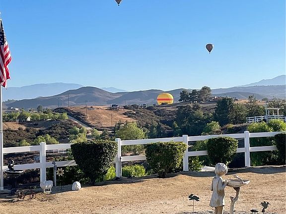 Looking for a HUGE workshop with a 4 car garage (over 2,600 sq ft!) and a view of Temecula wine country?! Welcome to 39597 Calle Escalona—an exceptional and meticulously maintained property located in the highly desirable Spanish Hills Ranchos community of Temecula Wine Country. Nestled on a rare, fully fenced 5.10-acre parcel, this one-of-a-kind estate offers breathtaking panoramic views of the Temecula Valley, unmatched privacy, and endless possibilities—all while being just minutes from city conveniences, top-rated schools, and renowned wineries. This spacious 4-bedroom, 2-bathroom manufactured home on a permanent foundation offers over 2,400 sq. ft. of comfortable, light-filled living space. The inviting floor plan features a cozy fireplace in the living room, generous common areas, and a large primary suite complete with a bonus retreat area, perfect for a home office, sitting room, or nursery. Outside, the property is loaded with premium features designed for both functionality and lifestyle. A detached 4-car garage houses a professionally built workshop equipped with multiple electrical outlets, 220V power, and an exterior RV plug—ideal for anyone needing serious workspace. This space can also be utilized as home gym, dedicated office space for those still working from home, extra space to store your toys - the possibilities are limitless! You'll also find a dedicated RV clean-out on-site for added convenience. There is plenty of room for additional parking for guests on this lot, whether on the concrete pad in front of the garage or on the gravel driveway leading from the gate up to the garage. Enjoy the security and ease of the gated electronic entry, and the rare benefit of a white vinyl split rail fencing on this fully fenced lot—a standout feature in this community. The property includes a private (non-shared) well, paired with a 7,500-gallon water storage tank, offering long-term peace of mind. A variety of mature fruit trees on a drip irrigation system enhance the outdoor space with seasonal beauty and productivity. There’s also plenty of usable land and room to add an ADU, barn, arena, or even plant your own private vineyard—the potential is limitless. Whether you're looking for a peaceful rural retreat, or an investment opportunity in Temecula’s Wine Country, this home delivers. With low HOA dues, incredible views, and country living just minutes from town, 39597 Calle Escalona is a rare opportunity you won’t want to miss.