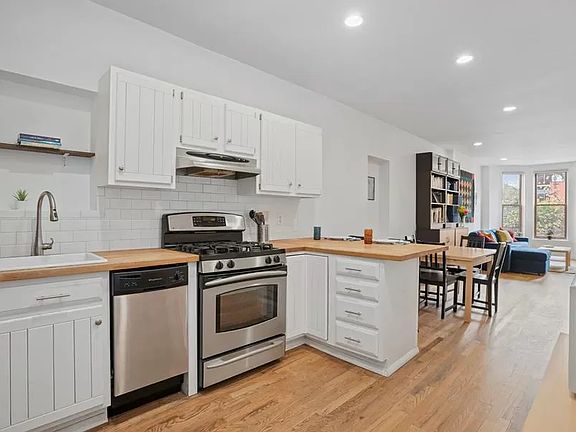 This spacious one-bedroom apartment in a pet-friendly boutique coop invites you to spread out in the open layout. The big airy space with bright bay window and high ceilings provides plenty of room for relaxing, entertaining, dining and working from home. The high end open kitchen features a large breakfast bar, stainless steel appliances including brand new refrigerator with ice maker and of course dishwasher. The large bedroom with ceiling fan can easily accommodate complete furniture set. The windowed bathroom has updated fixtures. Recessed lighting and hardwood floors are just a few of the details that make this home so appealing. The shared lush furnished garden calls you to enjoy the serene outdoor space. There is also designated storage. This self-managed 7-unit coop with great financials has no underlying mortgage and no flip tax. Gifting and co-purchasing are allowed. Enjoy the tranquility, convenience and charm of South Slope. Perfectly located just 2 blocks from Prospect Park and the bandshell, and 3 blocks from the subway. Restaurants and shops along 7th Avenue are only a few doors away.
