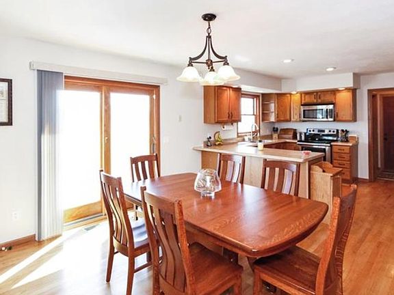 Country living with charm! Make memories here. Many recent updates and added features. Newly finished full basement. 4BR & 3BA, hardwood & ceramic tile floors, Private owners' bathroom, main floor laundry, large lower level family room, 2 car attached garage and nice pole building. All on 3+ acres. Enjoy sunsets from the lovely from porch. This is "Home".