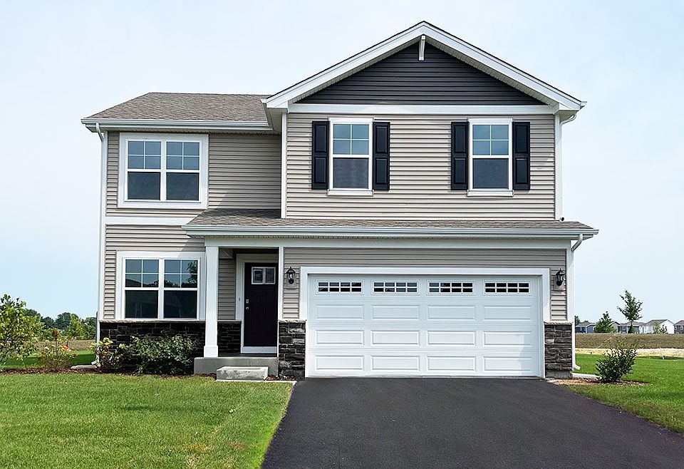 Check out 936 Arbor Ridge Drive, Hampshire, Illinois, a beautiful new model home in our Prairie Ridge Community. This two-story home is move-in ready. This homesite includes a fully sodded yard. This Bellamy plan offers over 2,000 square feet of living space with a full basement, flex room, 4 bedrooms, and 2.5 baths. Coming through your front door you will find the flex room with lots of natural light. This room can be used as an office, sitting room, or toy room, the possibilities are endless. Continuing down the hall you will enter the open concept great room and kitchen space. Your kitchen features designer, soft-close cabinetry with quartz countertops, stainless-steel appliances, a large island with bar stool overhang, and easy-to-maintain luxury vinyl plank flooring. Enjoy your private getaway with your large primary bedroom and ensuite bathroom with a raised height dual sink, quartz top vanity, and walk-in shower with fiberglass surround and obscure glass shower doors. Convenient walk-in laundry room, 3 additional bedrooms with a full second bath and linen closet complete the second floor. Nestled in scenic Hampshire, IL, Prairie Ridge beckons homebuyers with its promise of serene living and modern comforts. Conveniently located near major thoroughfares including I-90, Route 20, and Route 47, Prairie Ridge offers residents easy access to urban amenities while maintaining a peaceful suburban ambiance, Enjoy the sense of community in a relaxed, rural setting located near shopping, dining and outdoor recreation areas. Nestled in scenic Hampshire, IL, Prairie Ridge beckons homebuyers with its promise of serene living and modern comforts. All Chicago homes include our America's Smart Home Technology, featuring a smart video doorbell, smart Honeywell thermostat, smart door lock, Deako smart light switches and more. Exterior photo of actual home. Interior photos are of similar home, actual home may vary.