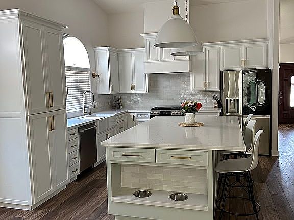Welcome to this beautifully remodeled home that perfectly blends modern design, energy efficiency, and comfortable living. The heart of the home is the newly redesigned open-concept kitchen, where walls were removed to create a bright, spacious layout perfect for entertaining. Enjoy a large center island with a solid slab countertop, custom cabinetry, high-end stainless-steel appliances, and a built-in drawer microwave—making this kitchen a true chef’s dream.