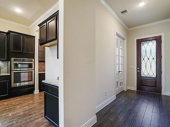 Popular one story in Del Webb's Active gated Community that has been barely lived in! Walls of windows in sun room looks out to private preserve with fountain that brings the outdoors in. Upgraded porcelain plank tile throughout. Formal study w/french doors. Kitchen has SS Whirlpool appliances, granite counters, butler's pantry and large walk-in pantry, over sized island and upgraded cabinetry. Master bedroom w/trey ceiling faces preserve. Master bath has exquisite walk-in spa shower and extra closet space. Texas basement walk-up attic has plenty of storage space. Tankless water heater. This great home is on a cul-de-sac within walking distance to clubhouse, fitness center, indoor and outdoor pool and more. Come home to this luxury lifestyle!