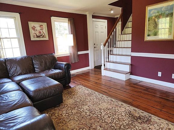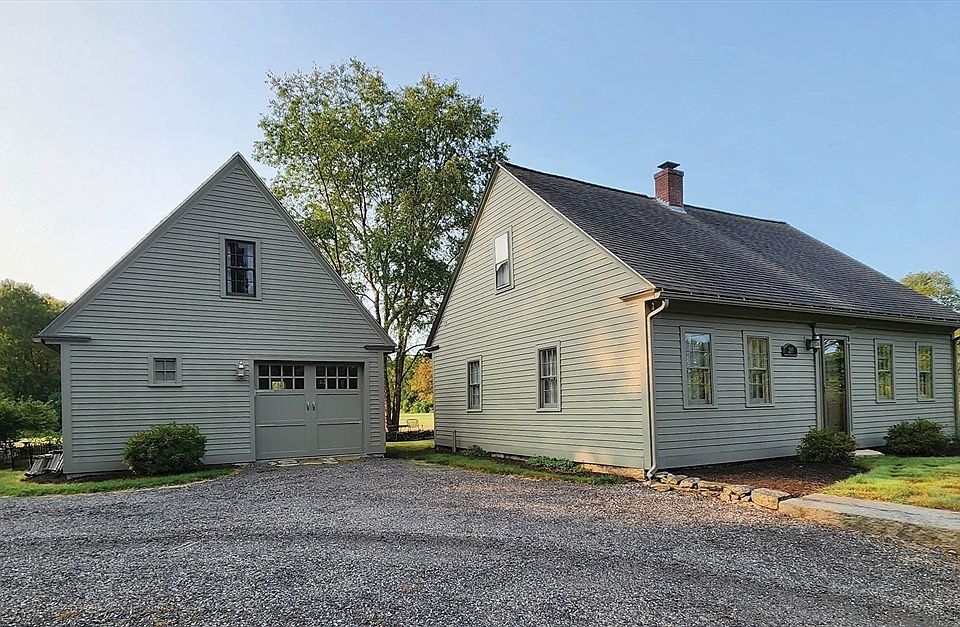 This country Cape is situated on a quiet street on just over an acre, with open space to the rear and side, offering privacy. The house was carefully renovated including wiring, plumbing, heating system, windows, insulated walls and attic, kitchen and baths while retaining original antique wide pine floors and original interior doors. The bright sun filled kitchen overlooks the private and pastoral back yard, with a well landscaped yard including sitting areas and a fenced garden, lawn and mature trees. The garage has been fully renovated including an all finished interior with built-in storage, a carriage house style garage door with opener, with a walkup stair to a large finished room heated with a woodstove, perfect for home office, game room or studio. Conveniently located near Rte 146 for easy commuting and access to all the area amenities. This home is ideal for the discerning buyer looking for quality details.