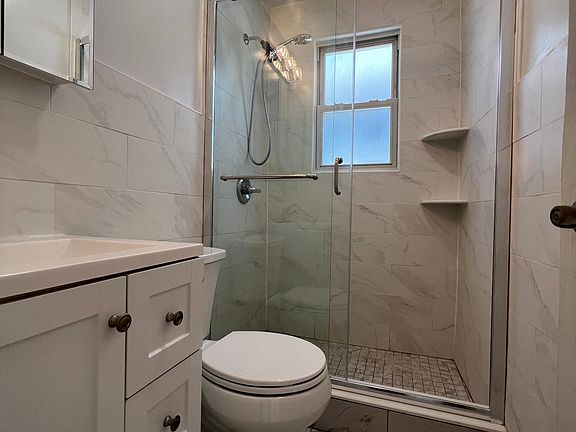 You might not be looking for something so cool and modern, but this renovated apartment is definitely that and more! Great location - express bus to NYC just across the street, shopping, restaurants, you name it! 2 bedrooms, dining room, living room and eat in kitchen. Light, bright and ready for you to move right in. Wonderful outside space too with a covered deck and a tiered, Mediterranean-style yard. Plenty of street parking. Washer and dryer in unit! Tenants responsible for yard maintenance and utilities. Pets ok with pet fee.