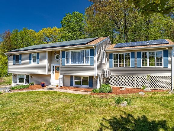 Terrific Lunenburg opportunity to own your own sun-drenched, open-concept, raised ranch on 3.3 acres! Main floor boasts large open concept kitchen/dining room, oversized family room, 2 bedrooms & full bath. Finished basement offers 2 large rooms, full bath & laundry with walk out with separate entrance. Great potential for in-law or lower level primary suite. Private water, septic & solar = self-sufficiency! Perimeter drain, newer roof, vinyl siding. Large deck & yard overlooks serene wooded 3.3 acre lot. Move-in ready, with upside potential! Perfect for nature lovers!