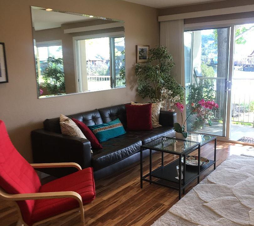 Sparkling modern quiet 1br/1bath condo for rent. Located on Corte Madera Creek, just a few blocks from charming downtown Larkspur restaurants, library, boutiques and Lark Theater. Beautifully upgraded interior with recessed lighting, hardwood floors, stainless steel appliances, gas cooking, built-in microwave, decorative tiling, window seat, large walk in closet and office space. Enjoy outdoor dining on your private deck with views of the creek. Relax in the pool, Jacuzzi, club house and fitness room. Easy first floor access from a quiet courtyard. Fully furnished with dishes, linens and towels. (Or, it may be rented unfurnished.) Rent includes water, trash. There is 1 assigned parking space in car port, and 2 storage spaces. Prefer long term tenant, but 6 month lease is possible. Schedule an appointment to view now.