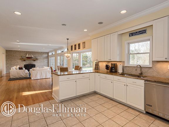 Privately situated down a long Driveway, this Newly listed Post Modern home sited on 1.1 acres in Westhampton with a short distance to the Village. Renovated, the main house has 5 bedrooms, 4.5 baths, formal dining room, family den with built-in wall unit and surround sound. Additional comforts include a Professional Gourmet Eat-In Kitchen with new Viking Stainless Appliances, and a Spacious Open Floor Plan overlooking to backyard and pool. The living area with cozy fireplace looks out onto the lush manicured grounds and heated gunite pool. Complete with gym, heated two car garage and Artist Studio with full bath, private entrance, and a large parking area. Enjoy every amenity and only one block to Westhampton Beach Village and close to all beaches. A true gem!!! Plan a preview today.