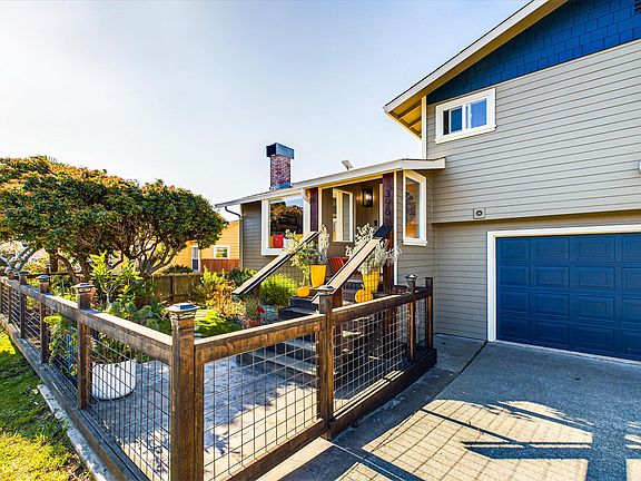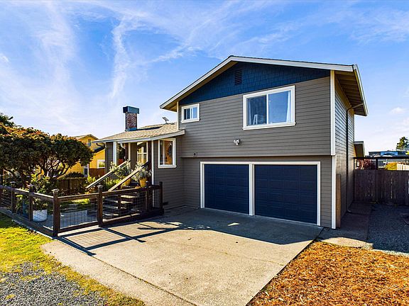 Accepted contingent offer with seller right to cancel with 17 days notice. Discover your dream home in the heart of Trinidad Village! This beautifully remodeled and well-maintained multi-level home offers 2 bedrooms, 2 bathrooms, and approximately 1400 sq. ft. of living space. Enjoy the open living concept featuring a cozy fireplace and charming bay window in the living room. Entertain on the deck off the dining area with views of Trinidad Head, or explore the fully fenced oversized yard with mature landscaping. Recent upgrades include solar array, newer roof, siding, kitchen counters, flooring, updated primary bath and more! Benefit from ample storage with a large double garage and extra storage room. Close proximity to town amenities, shopping, beaches and dining.