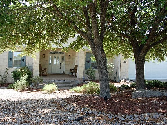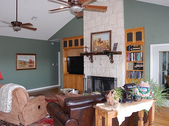 Extraordinary 180 degree elevated view of Kerrville and the hill country facing to the east. Magnificent sunrise views! Large, secluded deck with spa for entertaining or to get away from it all! Large main living area with vaulted ceiling high stone fireplace and wood built in features. Extensive wood flooring. Built in surround sound system throughout home. Large owner suite with separate tub, separate shower, double vanities, and large walk in closet. Gourmet kitchen with double size island and +/-30' of custom granite countertop space. Two car attached garage with door opener. Private sunroom for plants or to just sneak off to and relax!