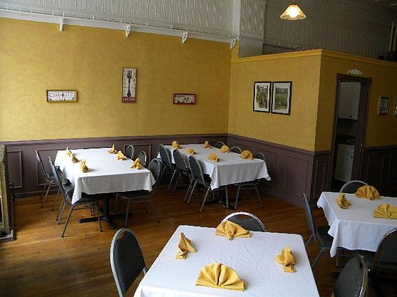 Gorgeous Restaurant or food service related facility,completely renovated & ready to operate,hardwd flrs,Nice Layout,New Waiters Prep Station w/New Kitch Cabinets,updated fixtures,Dry Storage Rm,A/C, New Natrl.Gas Furnace,Beautifully preserved decorative tin stamping ceiling,cooks prep & staging area,Ansel System,All Commercial Kitchen Equiptment is already provided,Comm 6 burner range,Pizza Oven,Condiment & Prep Station,Gas Grill,Two Double Door Refriger. Units & Sep. 2 Freezers,Deep Fryer,Bai Marie,6 Prep Tables,Triple Basin Scrub Sink,Rolling Rack,Tables & Chairs are provided with seating for 30 people,shelving & storage in basement adding an addl. 1200 sq.ft.,rear loading dock,all plumbing and electrical has been updated,Newly designed Bathroom,Pot & Pans+Racks,Coffee Station,Beverage Dispenser.